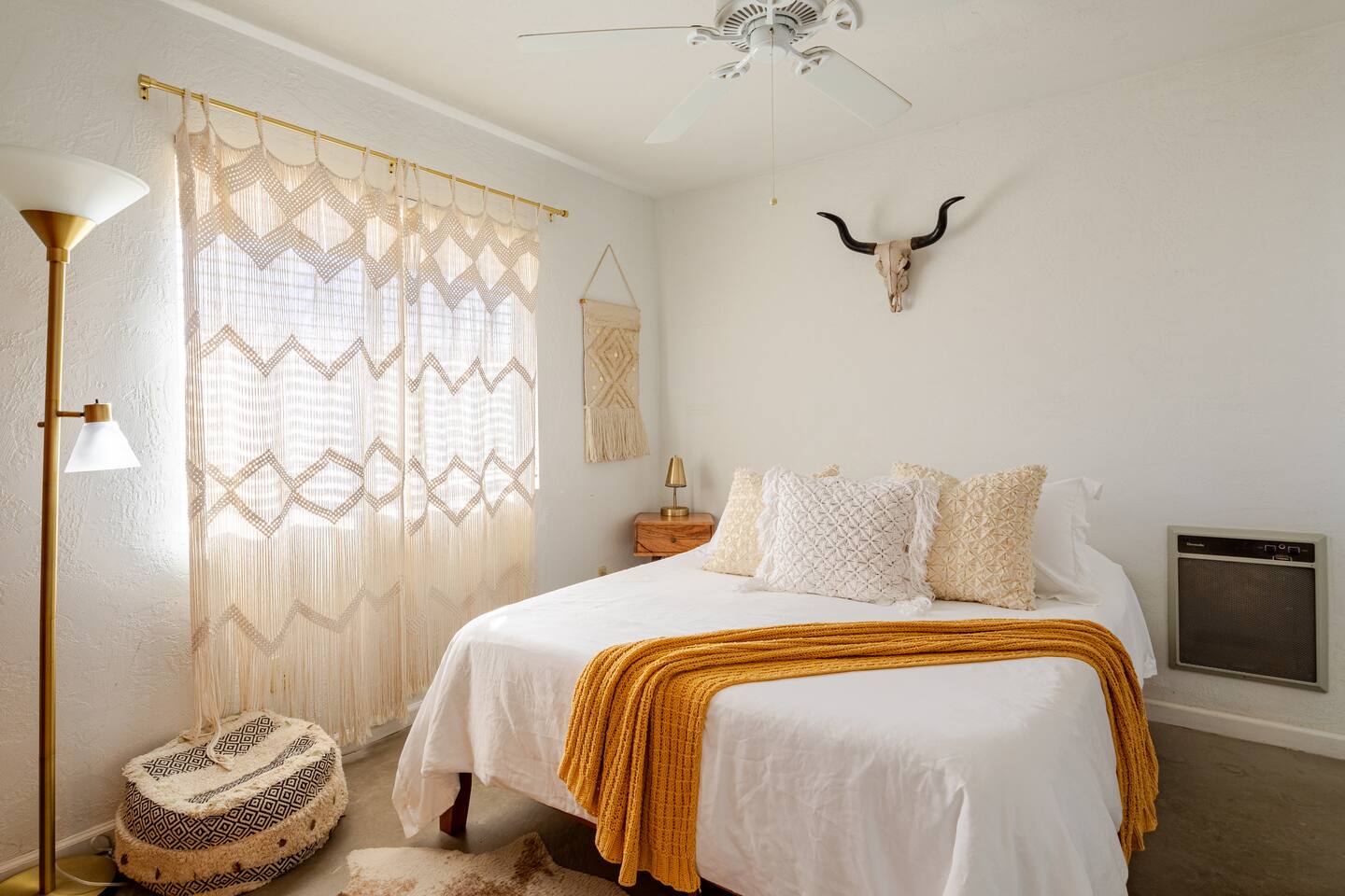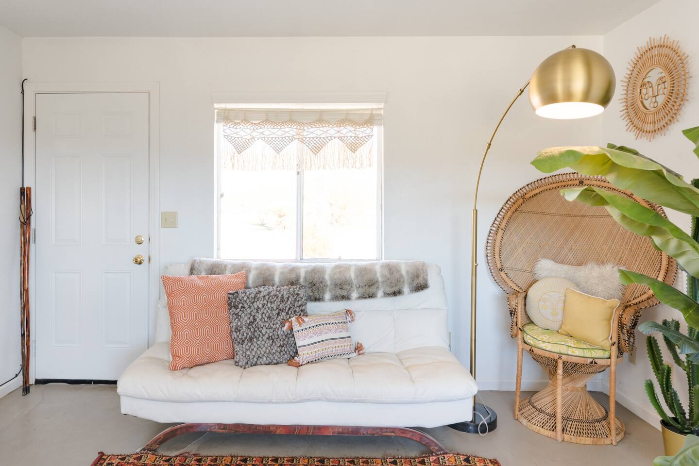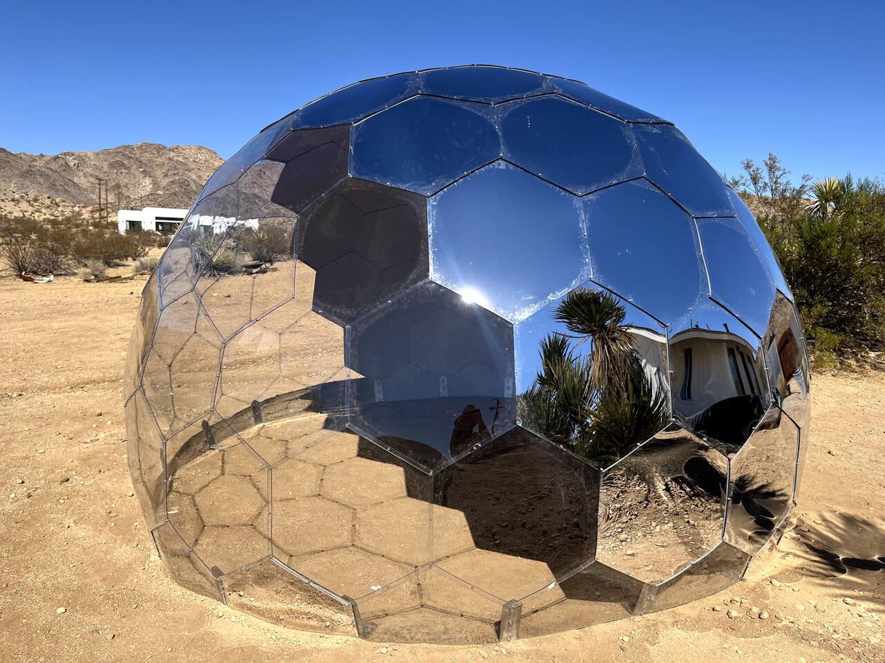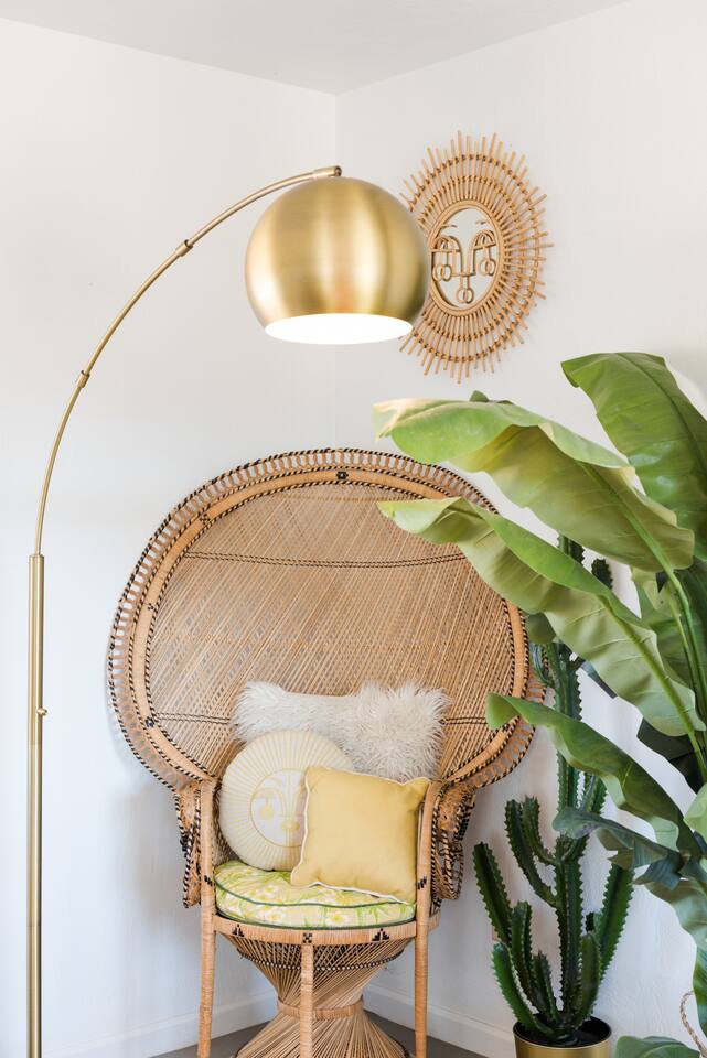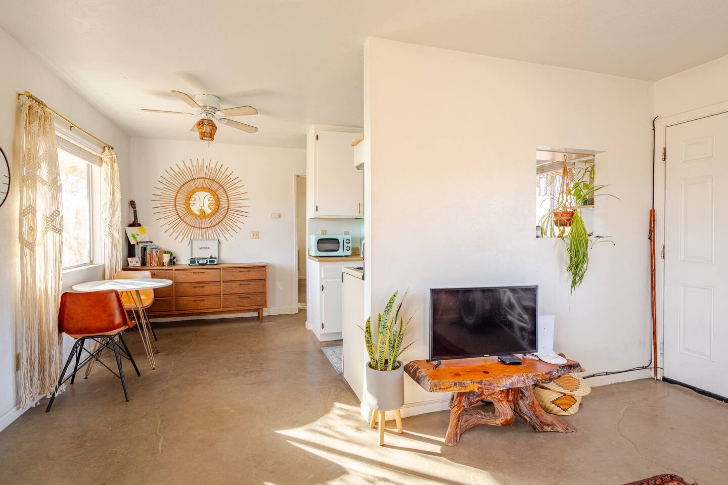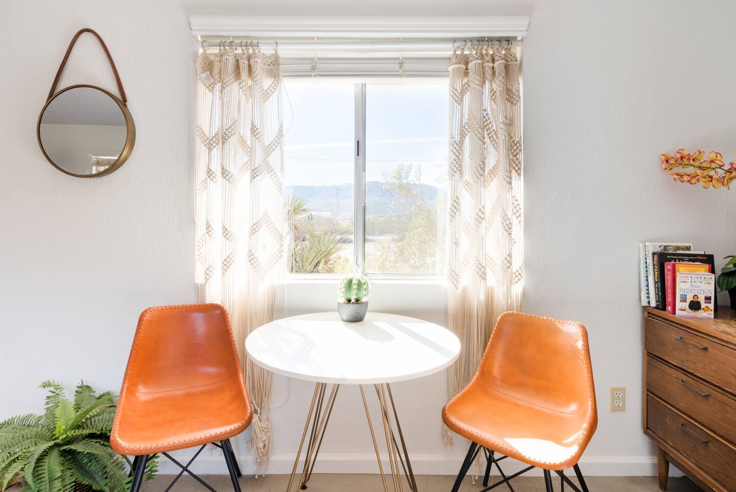 Gaze at a captivating watercolor sunset from the hot tub as the twilight sky brightens with stars. Decorated with comfort in mind, this cozy desert style boho modern-rustic home treats guests to a 10ft cowboy pool, a fun outdoor cold plunge bathtub, hot tub with a deck lounge chairs, fire pit, BBQ grill, stargazing mirror dome and telescope, 2 electric bikes and spectacular unobstructed desert views for acres. Near Joshua Tree National Park, Pappy and Harriet’s & other attractions. @casacabin