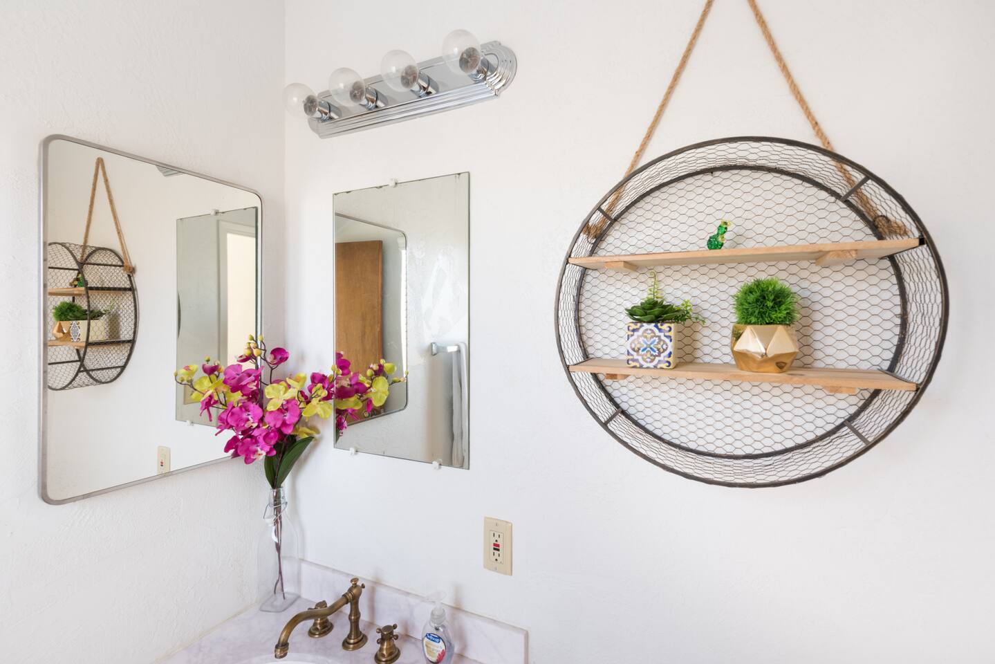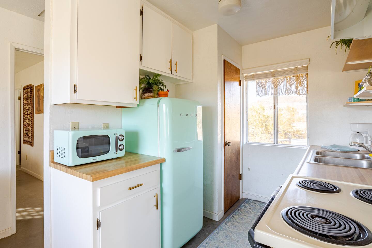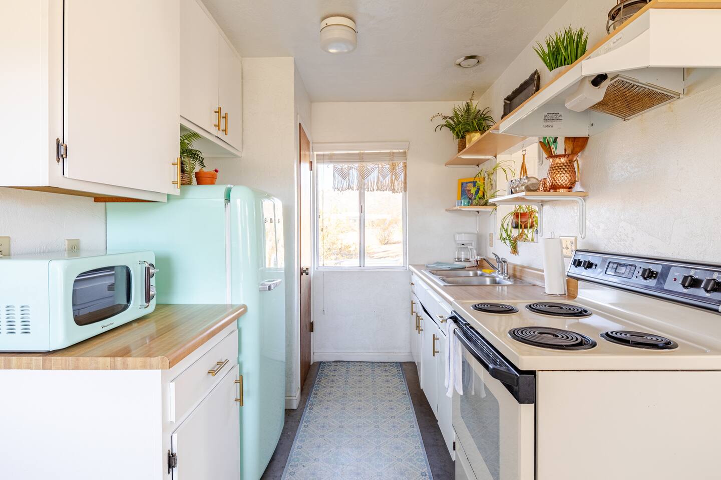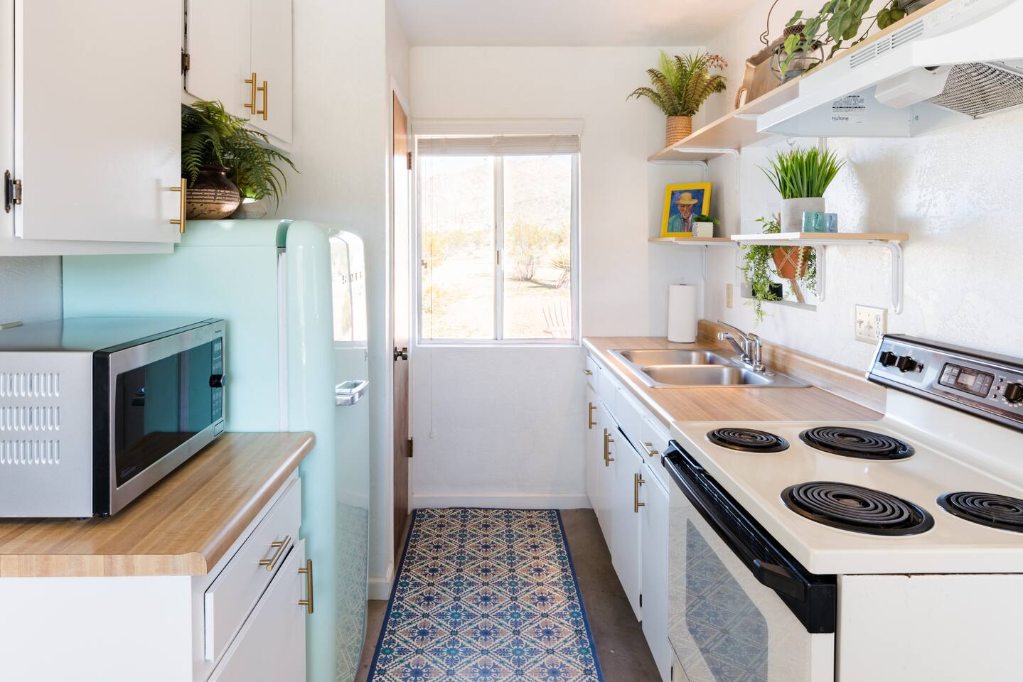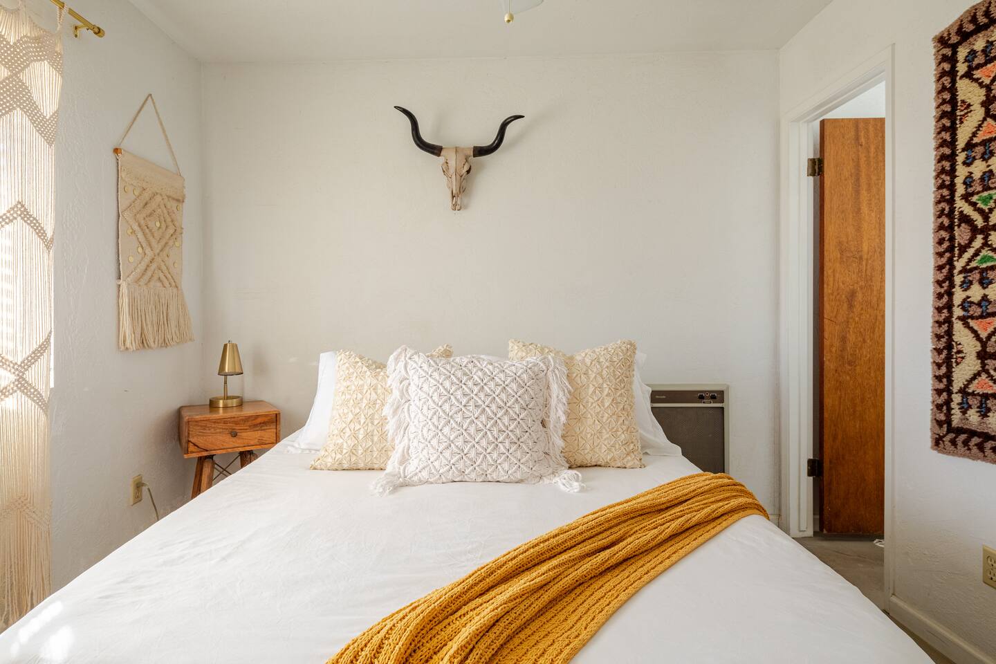 Gaze at a captivating watercolor sunset from the hot tub as the twilight sky brightens with stars. Decorated with comfort in mind, this cozy desert style boho modern-rustic home treats guests to a 10ft cowboy pool, a fun outdoor cold plunge bathtub, hot tub with a deck lounge chairs, fire pit, BBQ grill, stargazing mirror dome and telescope, 2 electric bikes and spectacular unobstructed desert views for acres. Near Joshua Tree National Park, Pappy and Harriet’s & other attractions. @casacabin