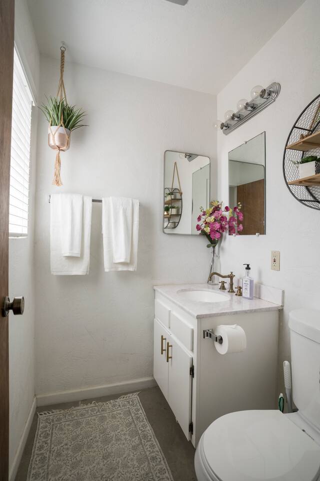 There is wildlife here. You might see quails, roadrunners, our friendly desert tortoise visitor, coyotes and other animals. It’s just a part of life here. Because there is wildlife here we do not recommended leaving children or pets unattended. PETS Pets are allowed please just register them by including them in your guest count. (EX. 2 guests, 1 Pet) The cabin has 2 beds, a queen bed in the master suite and a the couch folds flat. Next to the couch we also have 2 chairs that fold into single beds or combine them together for one more additional large bed. 'Our cowboy pool is a seasonal amenity. During winter, it is fully winterized and not available for use due to low temperatures. We reopen it as soon as the weather warms up' From the main hwy, you will need to drive down approx 6 minutes of dirt road to access the house. These roads are well maintained and easy to drive in any car. “Of all the paths you take in life, make sure a few of them are dirt.” ― John Muir --------------------------------------------------------- 💖 Romantic Room Decor Package – $190 For guests celebrating an anniversary, honeymoon, birthday, or simply wanting to surprise someone special, we offer a beautifully curated Romantic Room Decor Package. Here’s what’s included: 🌹 Rose petals scattered throughout the room, on the floor and furniture, creating a warm and inviting atmosphere 💕 A bed fully covered with petals, designed with a romantic heart centerpiece 🕯️ LED candles placed safely around the room to provide a soft, intimate glow ✨ Fairy lights for that magical, cozy touch unique to Joshua Tree nights 🎈 White and red balloon decor to complete the celebration setting