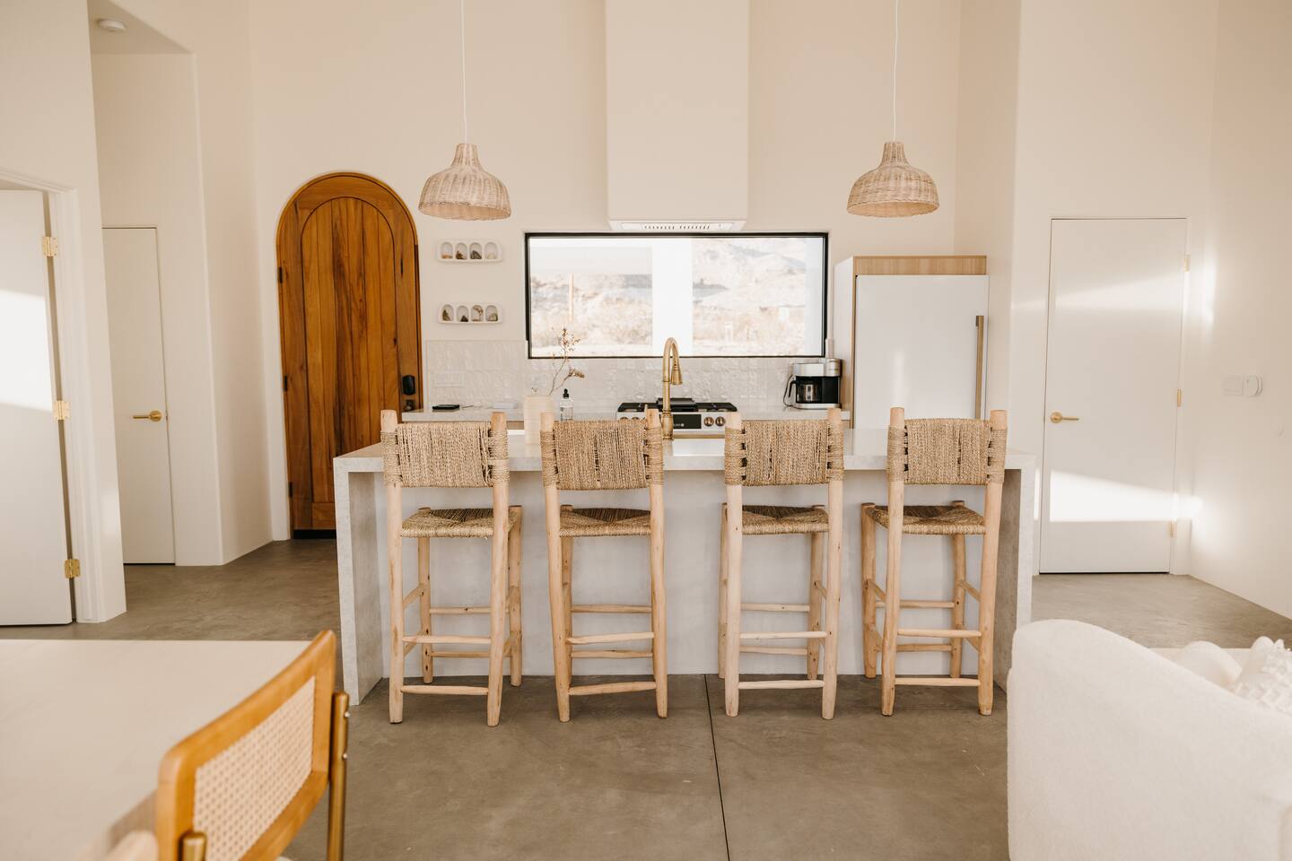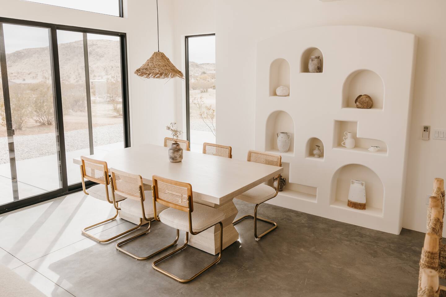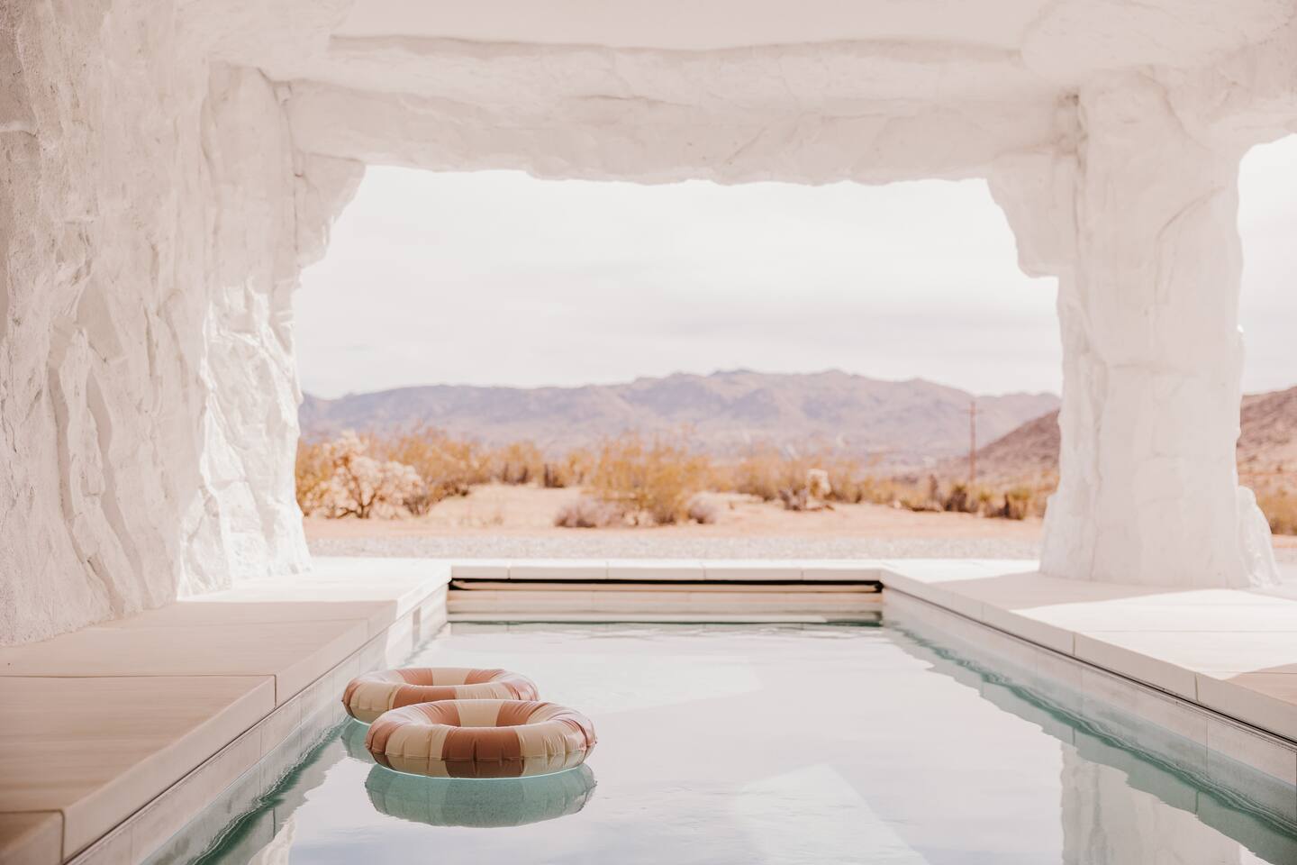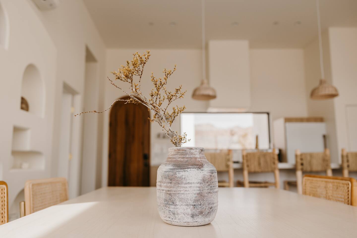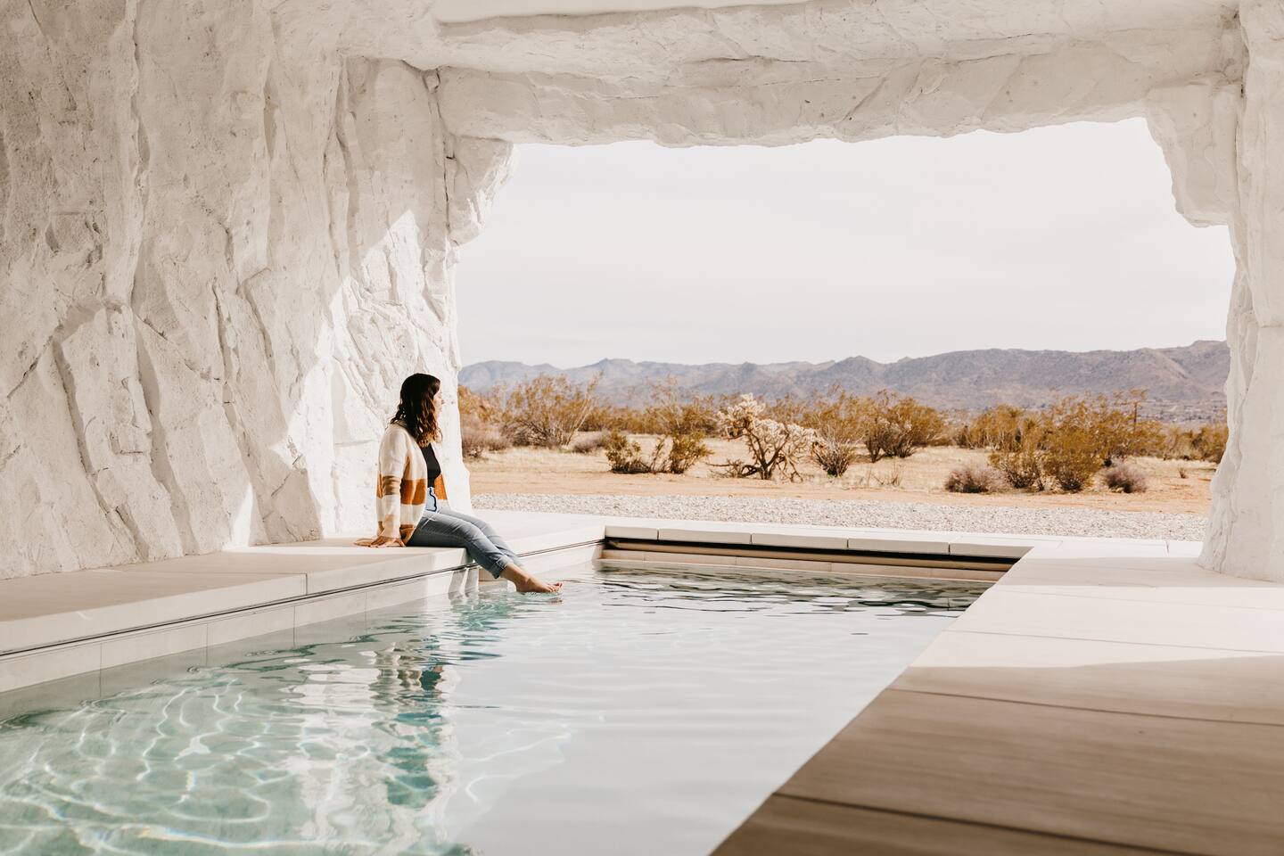 Introducing our breathtaking new Airbnb retreat nestled in the heart of Joshua Tree, a true fusion of Cycladic charm and desert serenity. Inspired by the iconic architecture of the Greek Cycladic islands, this unique desert oasis promises an unforgettable escape. As you step onto the property, you'll be transported to a world of whitewashed simplicity and organic elegance, reminiscent of the quaint villages of Greece. The pristine exterior, adorned with rounded edges and minimalist lines, seamlessly blends into the rugged Joshua Tree landscape. The centerpiece of this remarkable retreat is a private saltwater cave pool and spa, carefully carved into the rocky terrain. Dive into the crystal-clear waters or unwind in the soothing warmth of the spa, all while surrounded by the natural beauty of the desert. Lush vegetation and indigenous flora create a secluded haven, offering both tranquility and privacy. Inside, you'll find a meticulously designed interior that marries Cycladic aesthetics with modern comfort. Sun-soaked rooms are adorned with soothing whites and earthy ocean tones, providing a harmonious contrast to the desert's vibrant hues. The open-plan living space with an arch bunk bed seamlessly connects to a fully-equipped kitchen, inviting guests to create culinary masterpieces. Enjoy panoramic views of Joshua Tree's iconic rock formations while savoring Mediterranean-inspired cuisine or simply gazing at the starry night sky. Whether you're seeking a peaceful retreat, a romantic getaway, or a luxurious escape, our Joshua Tree Airbnb inspired by Cycladic architecture guarantees a unique and rejuvenating experience. Unplug, relax, and let the harmonious blend of Greece and the desert enchant your senses, making your stay an unforgettable memory. Follow us @casacabin