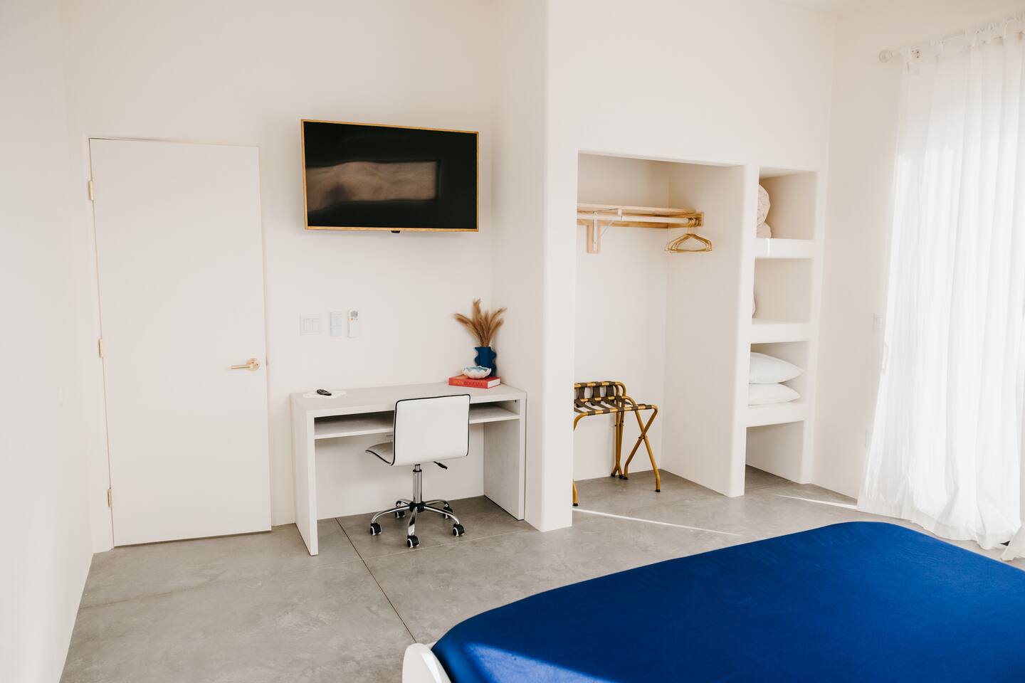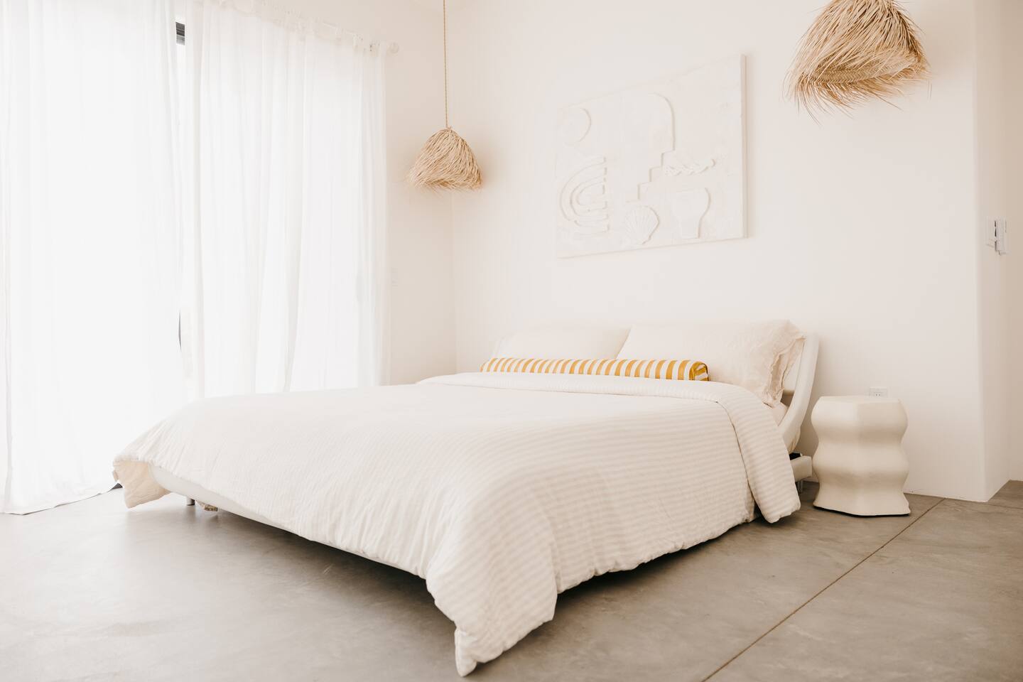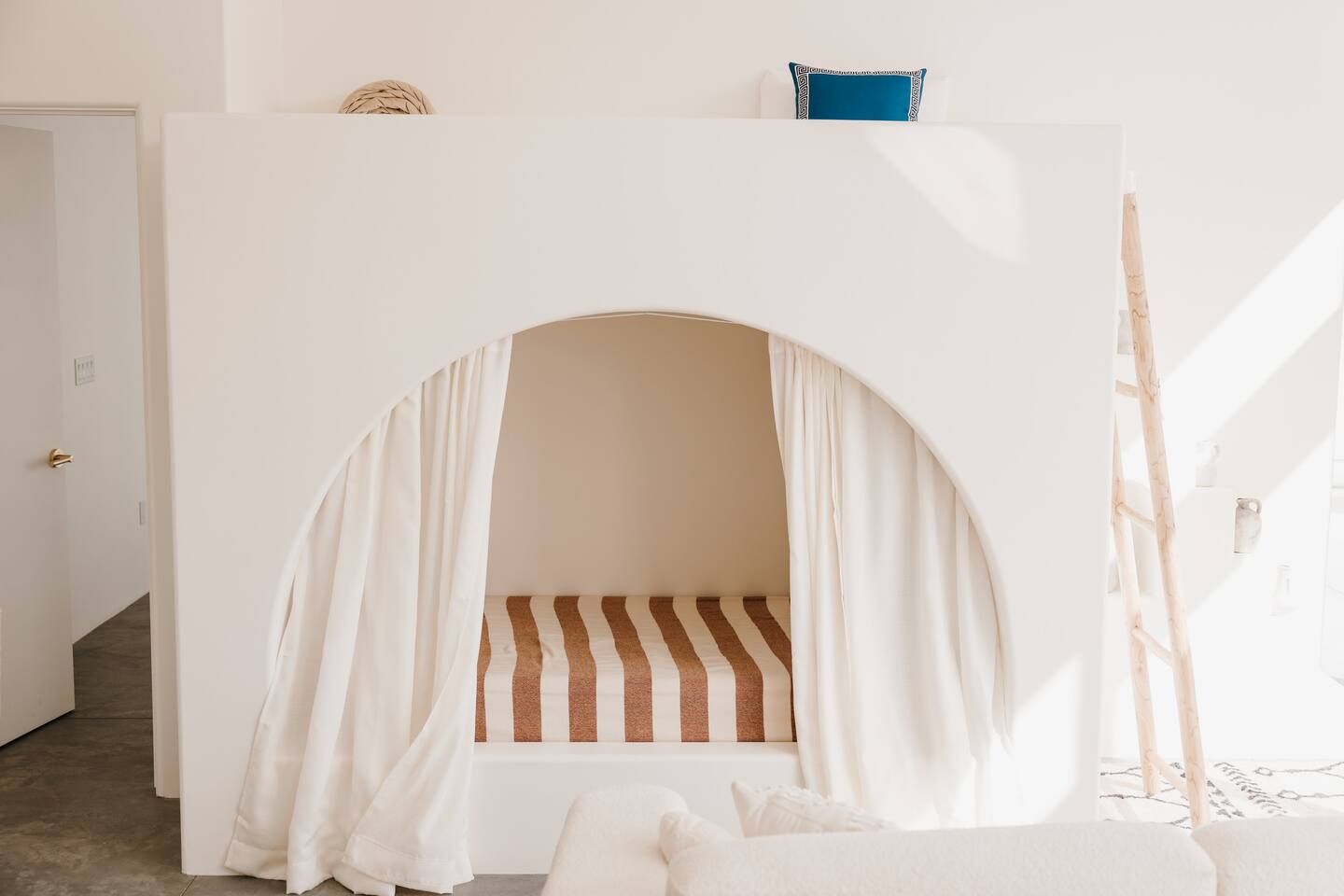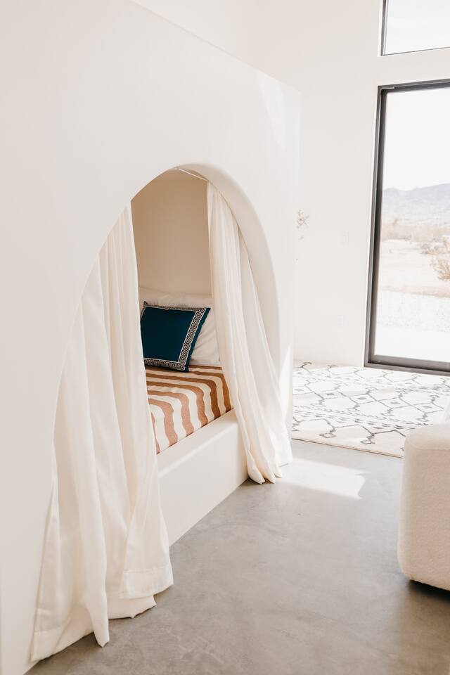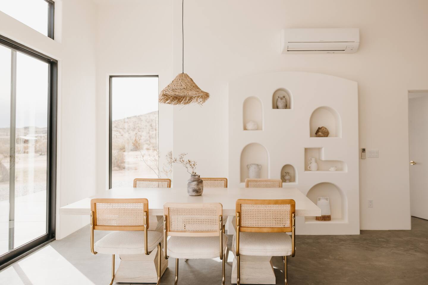 Introducing our breathtaking new Airbnb retreat nestled in the heart of Joshua Tree, a true fusion of Cycladic charm and desert serenity. Inspired by the iconic architecture of the Greek Cycladic islands, this unique desert oasis promises an unforgettable escape. As you step onto the property, you'll be transported to a world of whitewashed simplicity and organic elegance, reminiscent of the quaint villages of Greece. The pristine exterior, adorned with rounded edges and minimalist lines, seamlessly blends into the rugged Joshua Tree landscape. The centerpiece of this remarkable retreat is a private saltwater cave pool and spa, carefully carved into the rocky terrain. Dive into the crystal-clear waters or unwind in the soothing warmth of the spa, all while surrounded by the natural beauty of the desert. Lush vegetation and indigenous flora create a secluded haven, offering both tranquility and privacy. Inside, you'll find a meticulously designed interior that marries Cycladic aesthetics with modern comfort. Sun-soaked rooms are adorned with soothing whites and earthy ocean tones, providing a harmonious contrast to the desert's vibrant hues. The open-plan living space with an arch bunk bed seamlessly connects to a fully-equipped kitchen, inviting guests to create culinary masterpieces. Enjoy panoramic views of Joshua Tree's iconic rock formations while savoring Mediterranean-inspired cuisine or simply gazing at the starry night sky. Whether you're seeking a peaceful retreat, a romantic getaway, or a luxurious escape, our Joshua Tree Airbnb inspired by Cycladic architecture guarantees a unique and rejuvenating experience. Unplug, relax, and let the harmonious blend of Greece and the desert enchant your senses, making your stay an unforgettable memory. Follow us @casacabin