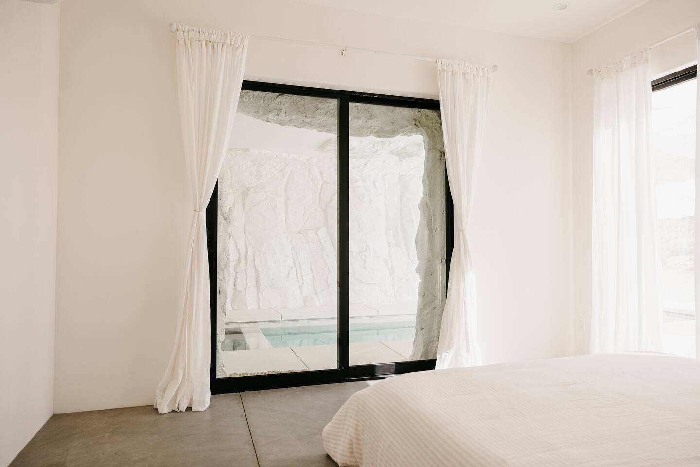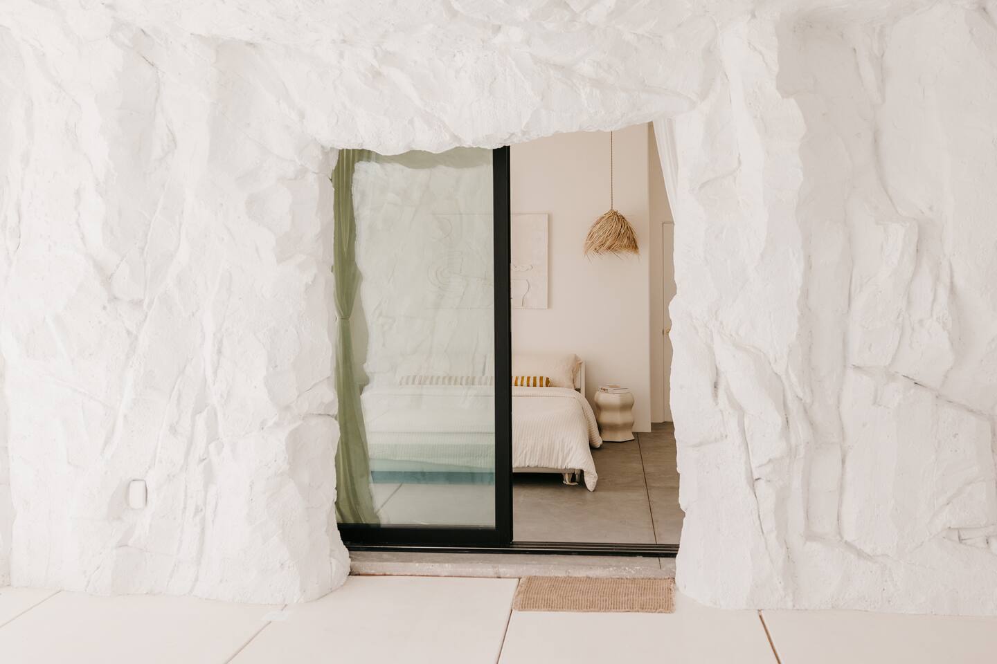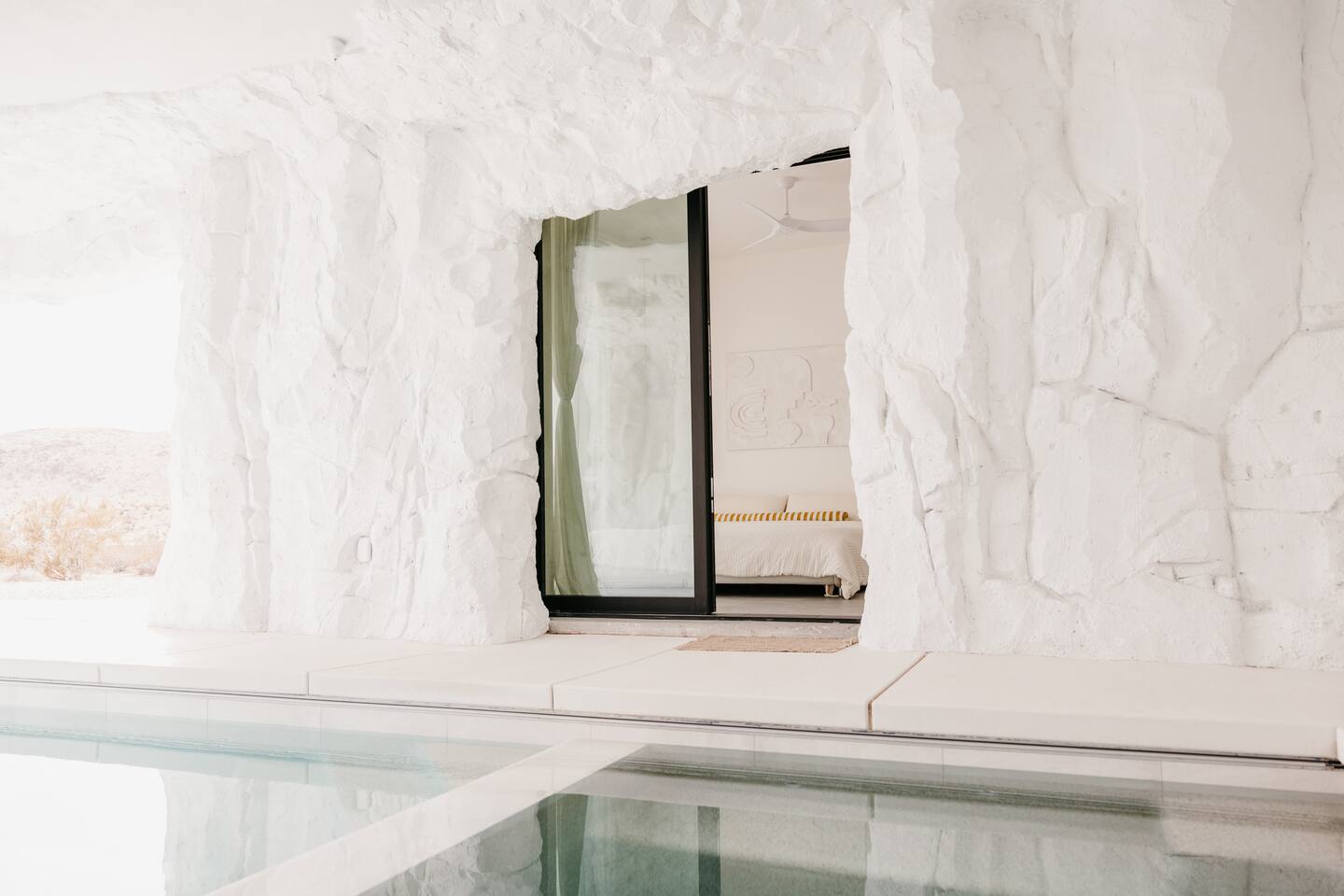 Inspired by Cycladic Mediterranean architecture, the highlight of La Cave is undoubtedly the beautiful cave pool and spa, providing a private and serene space for you to relax and unwind. The interior of the house is designed to complement the natural surroundings, with earthy tones and natural materials throughout. This unique home is the perfect place to make unforgettable memories. Experience the magic of the desert like never before!! @CasaCabin
