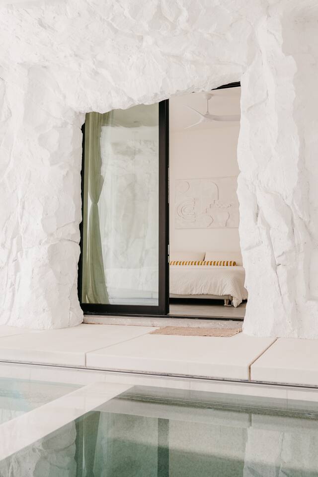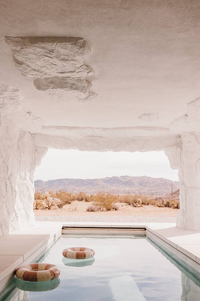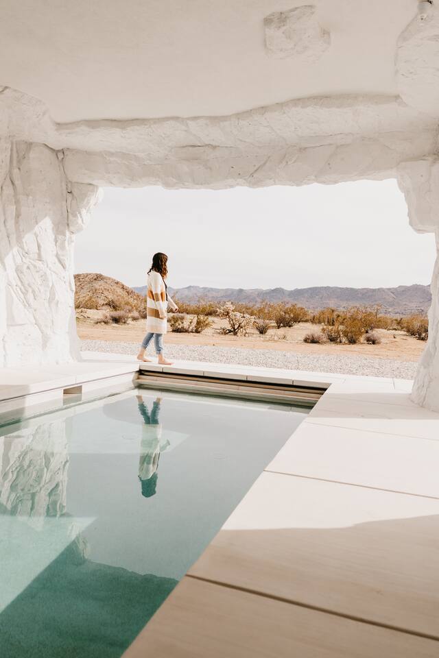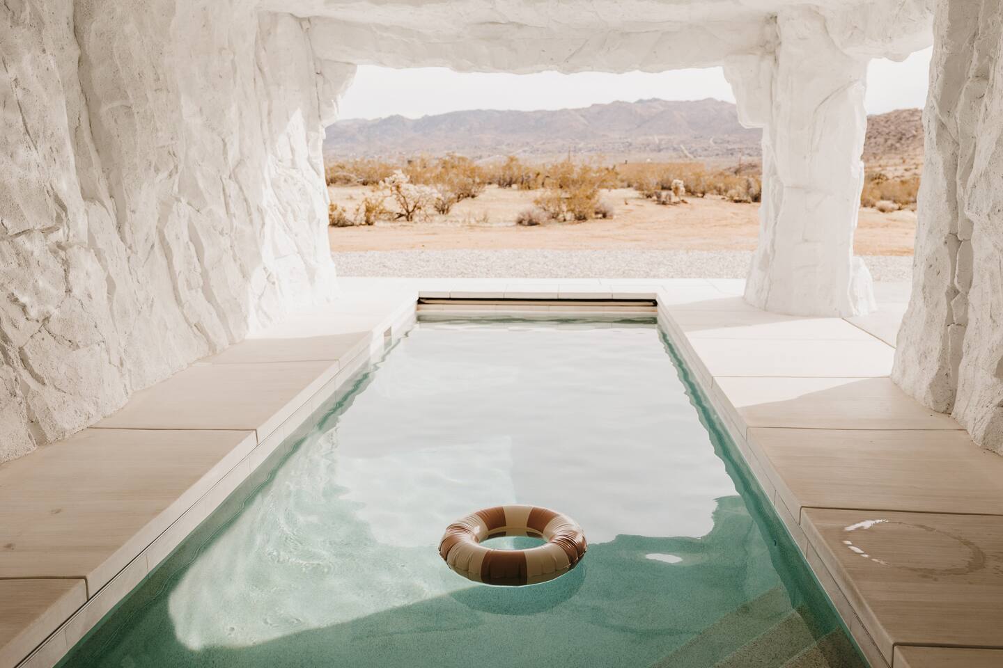 Inspired by Cycladic Mediterranean architecture, the highlight of La Cave is undoubtedly the beautiful cave pool and spa, providing a private and serene space for you to relax and unwind. The interior of the house is designed to complement the natural surroundings, with earthy tones and natural materials throughout. This unique home is the perfect place to make unforgettable memories. Experience the magic of the desert like never before!! @CasaCabin