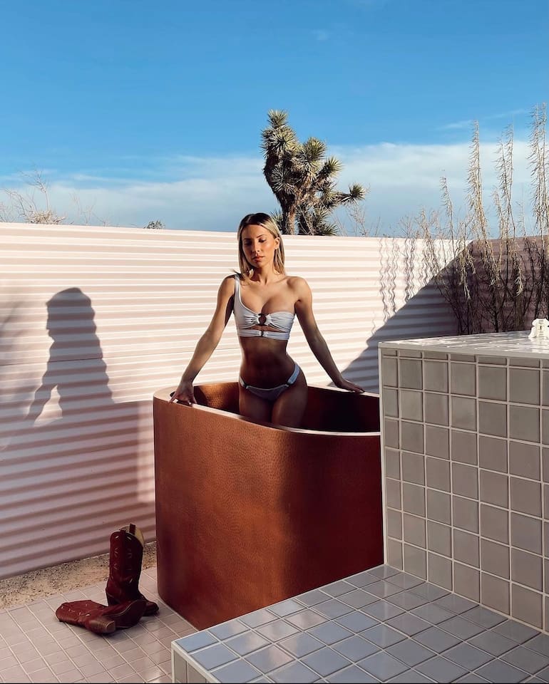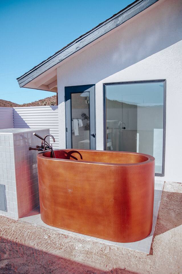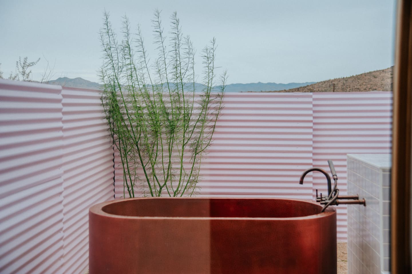 Welcome to Ocotillo Casita—your tranquil retreat, as featured in Domino Magazine . This serene and opulent casita now boasts a stunning resort-style pool inspired by Bali and Mexico. With an outdoor copper tub for two, perfect for a romantic soak under the stars, this oasis offers an unparalleled escape. Whether you seek relaxation or a romantic getaway, Casa Cabin provides a luxurious experience you won’t forget @casacabin